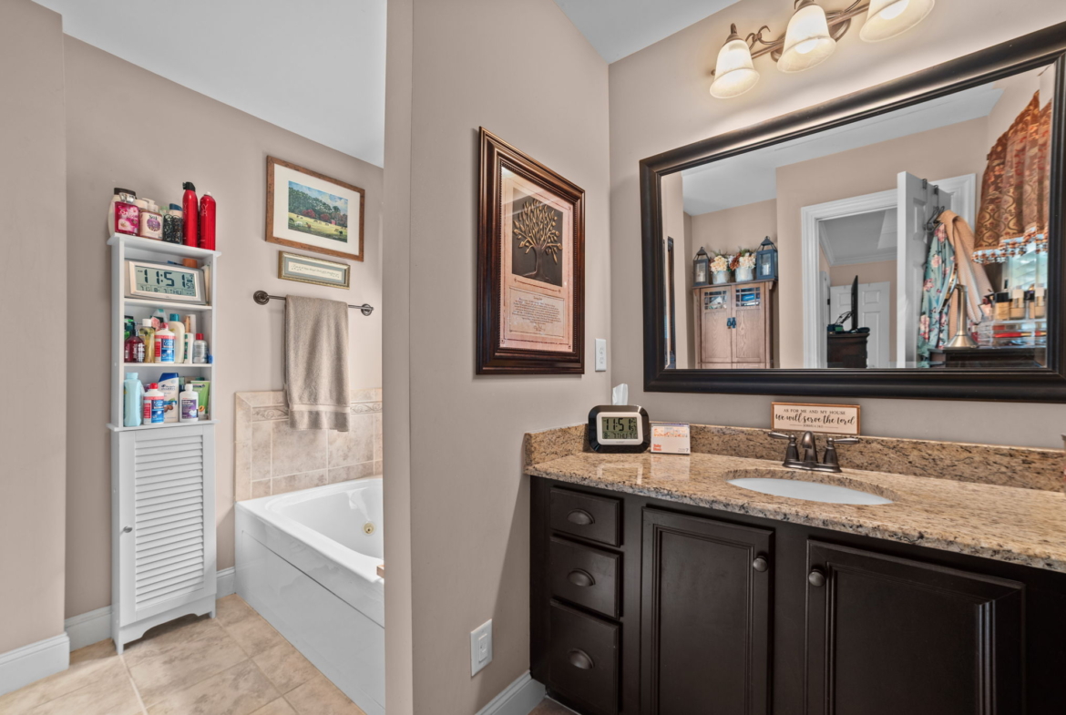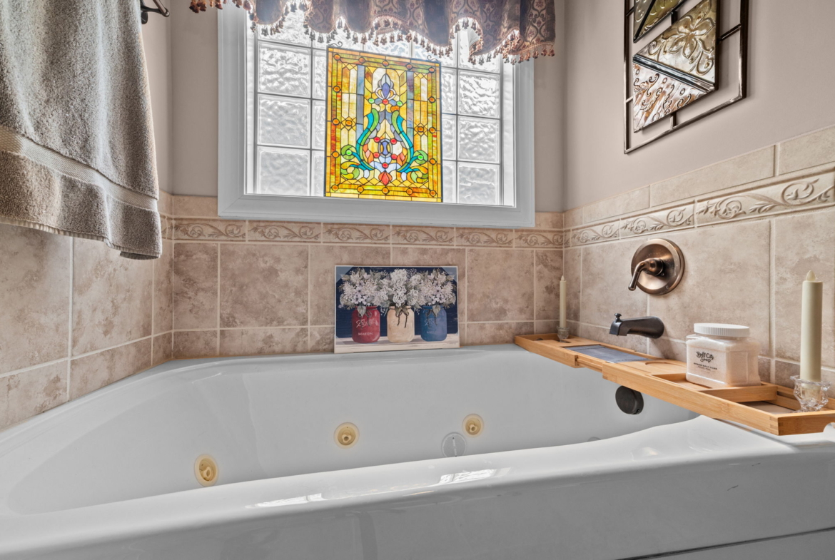 The spacious primary suite, with a beautiful trey ceiling, has an ensuite bathroom with separate shower and jetted tub. Guest bedrooms are perfect for family or guests. Finished bonus room upstairs is perfect for an extra bedroom or playroom, and provides walk in access to large attic.