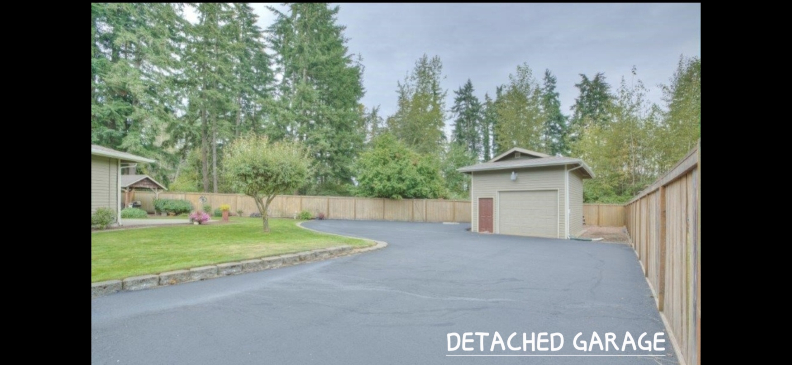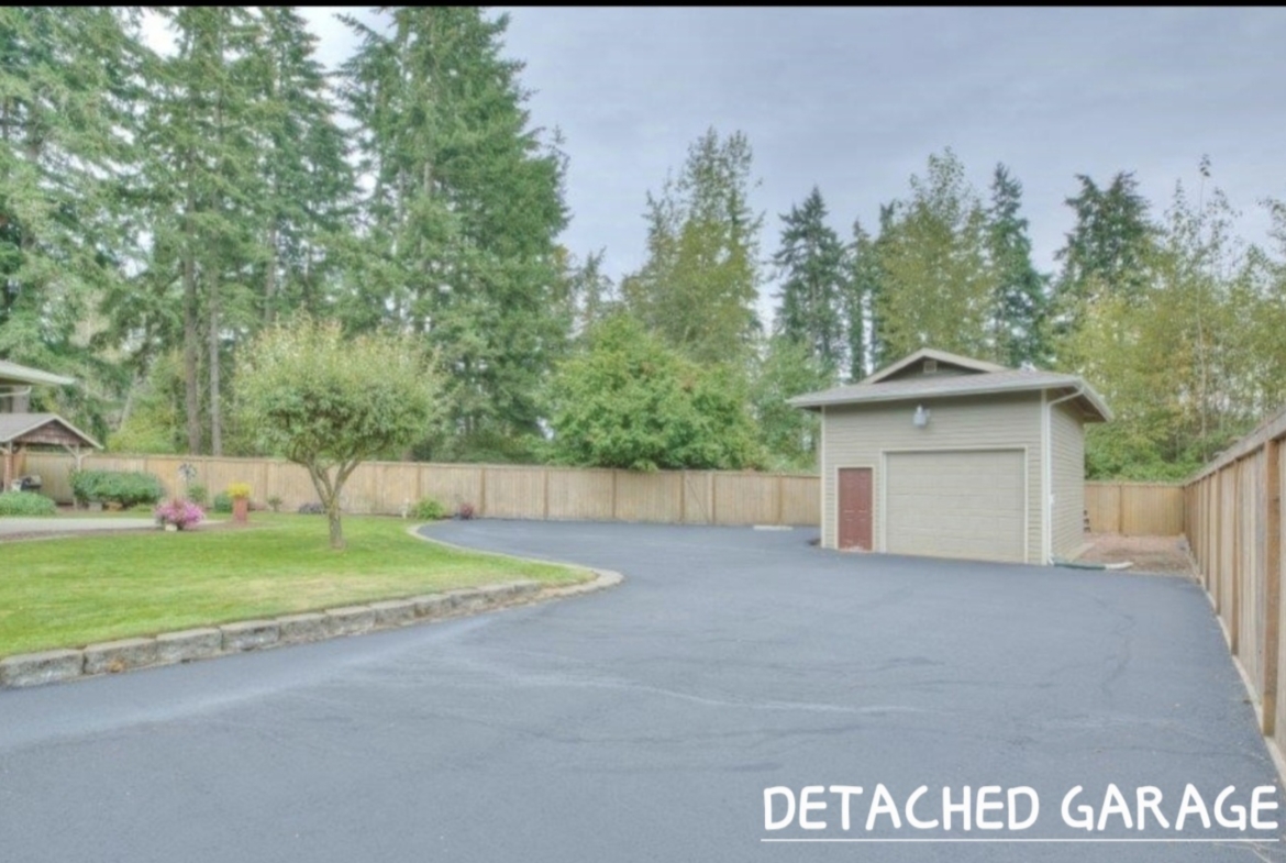 Two car attached garage, RV Parking, covered bbq area, shed and a private driveway leading to a detached garage or shop with 220V power. Providing plenty of space to fit your needs. Conveniently located just minutes from all the major HWYs 512, 167, I5.