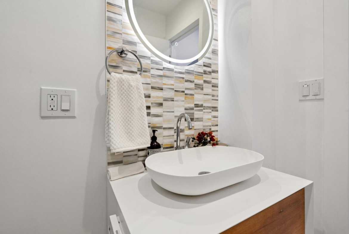 This level includes a meticulously renovated full bathroom that prioritizes luxury and comfort.