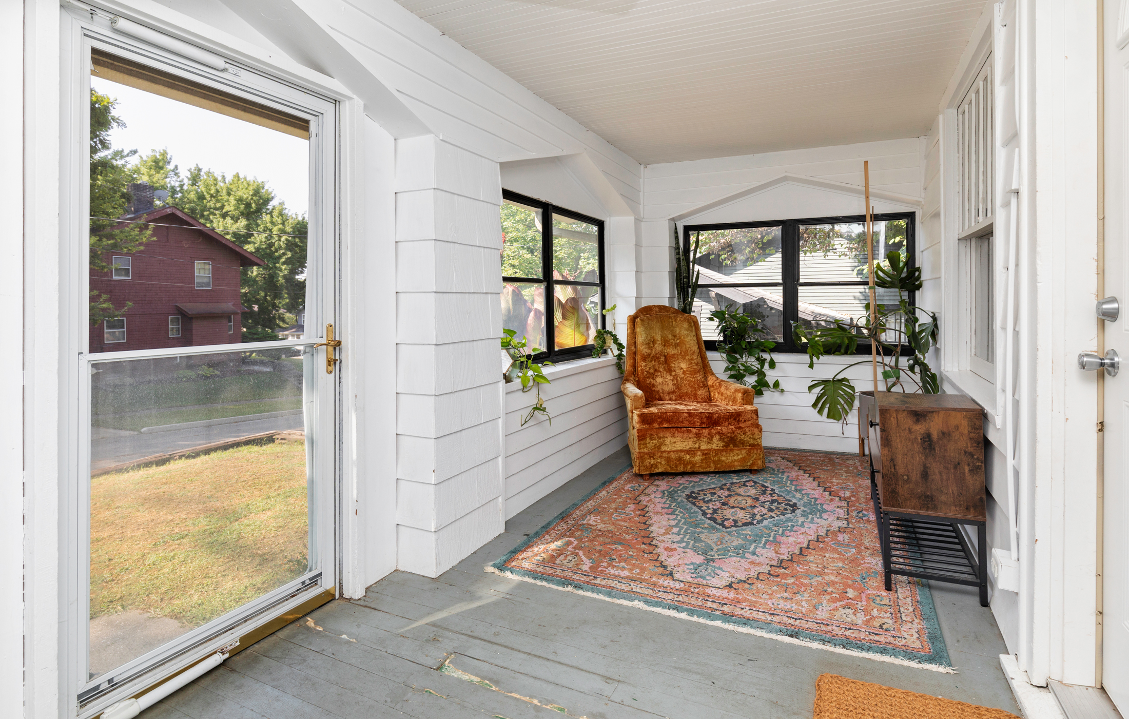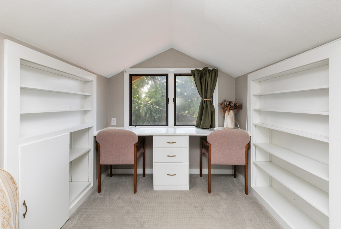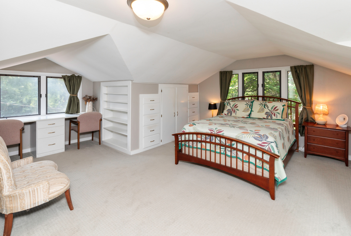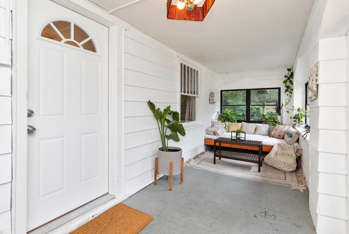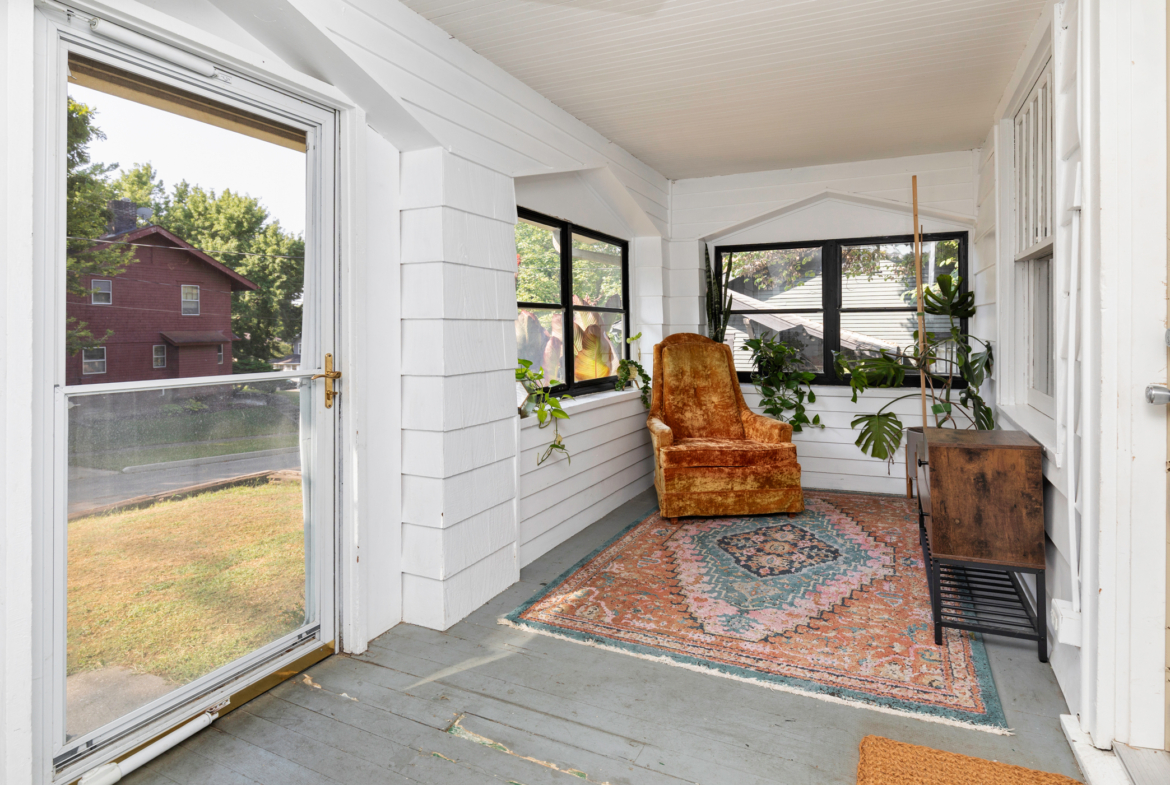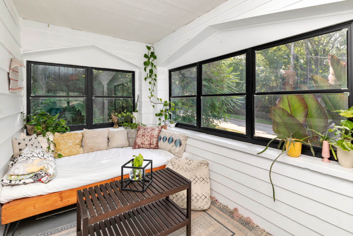 This home includes three bedrooms and two full bathrooms across two floors, offering 1,429 square feet of comfortable living space. A charming three-seasons porch and back deck extend your living area outdoors, perfect for relaxing or entertaining with a couch and daybed designed exclusively for this space. Built-in drawers and bookshelves provide ample storage, making the home feel more spacious.