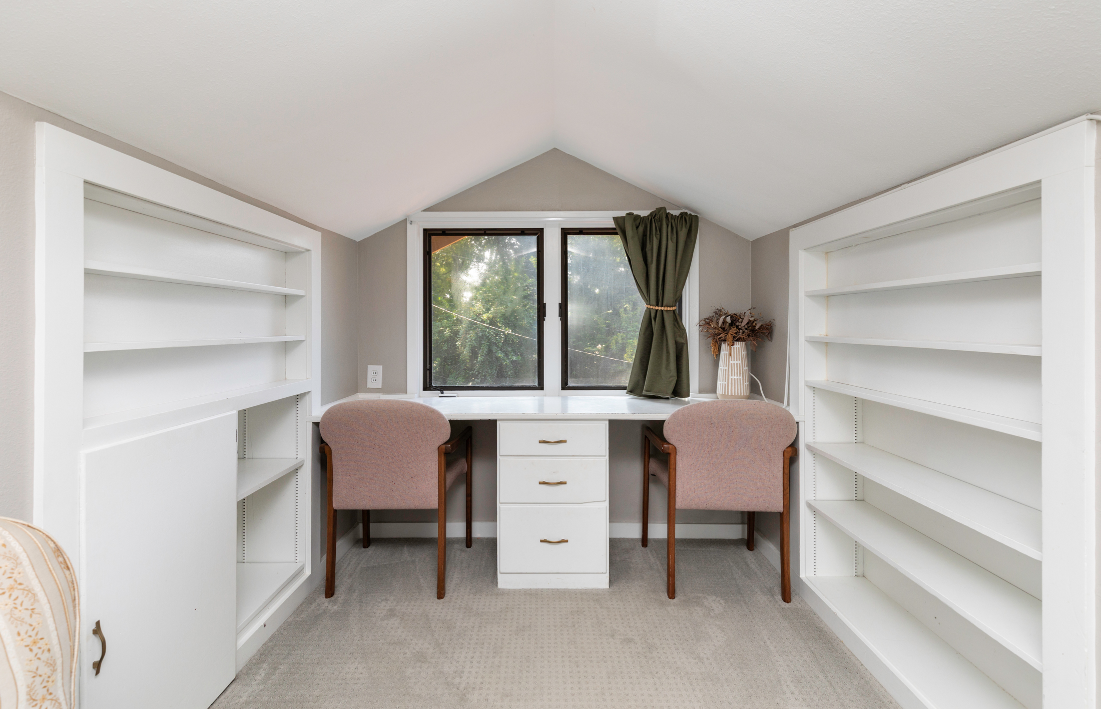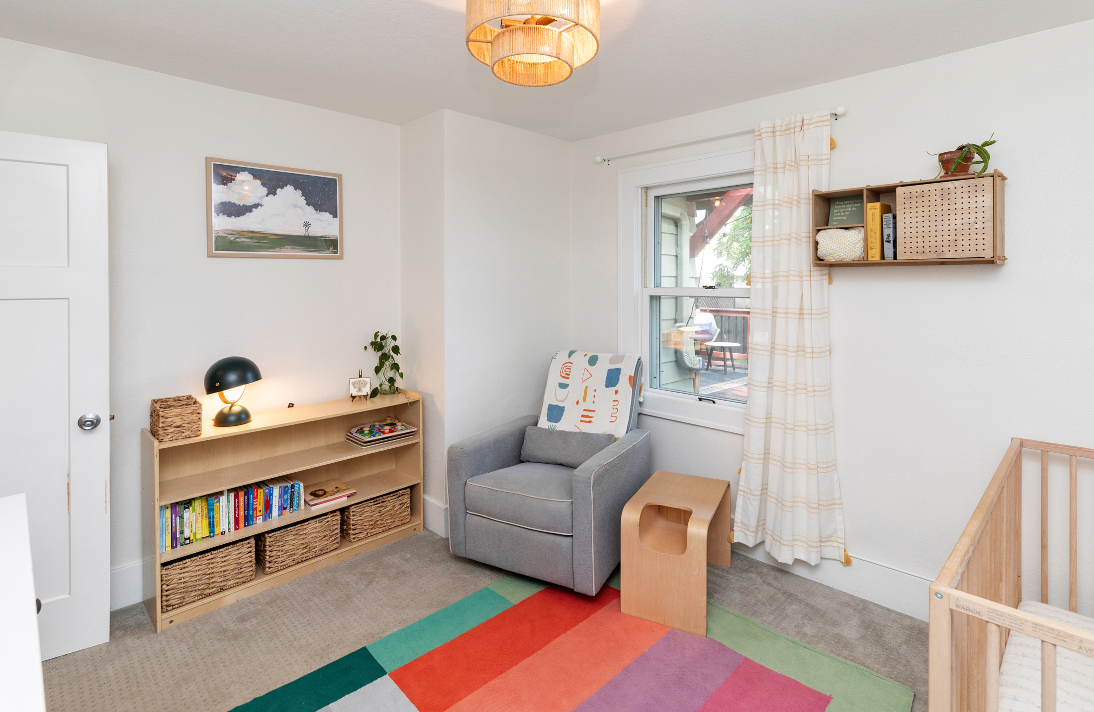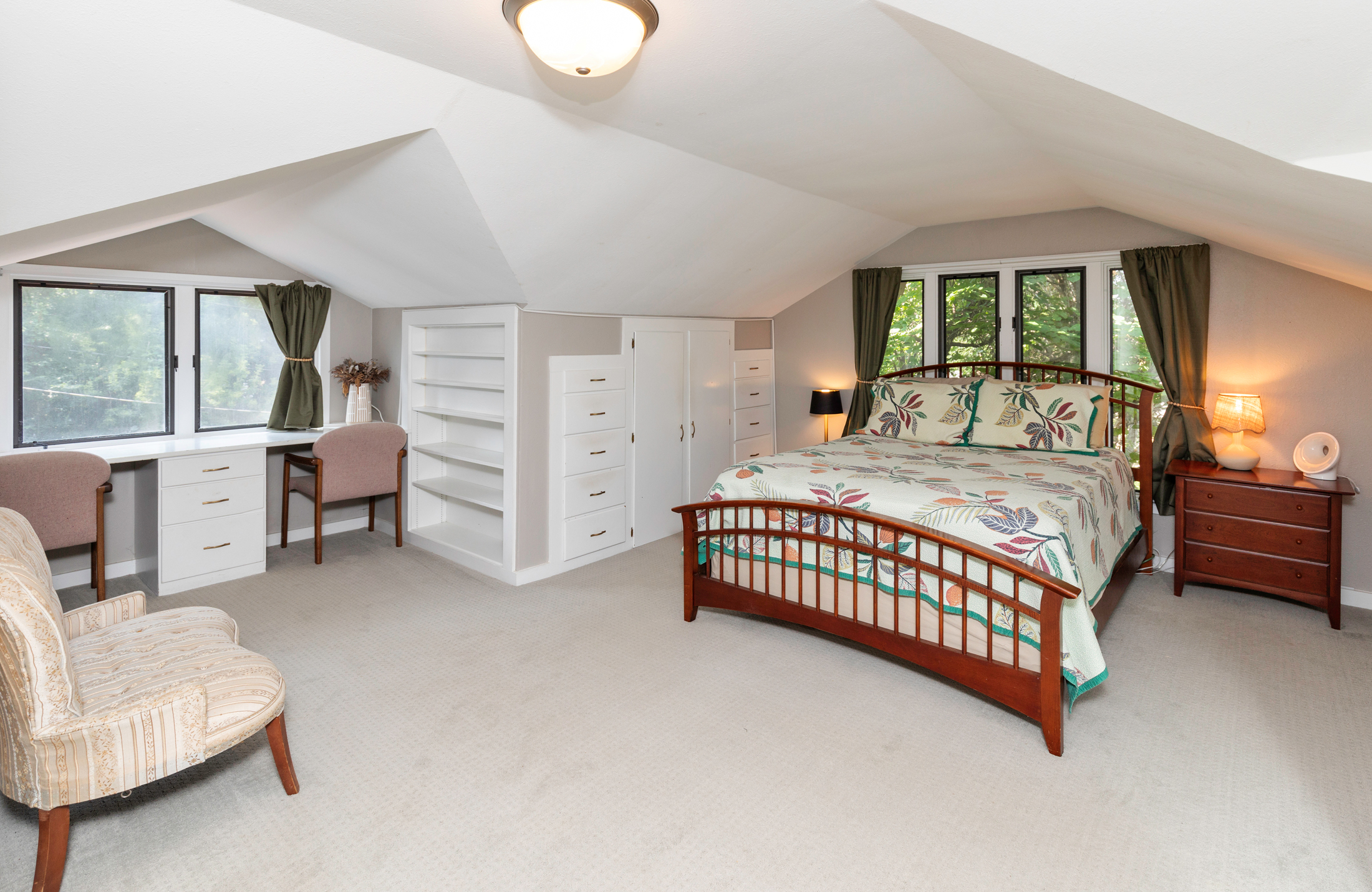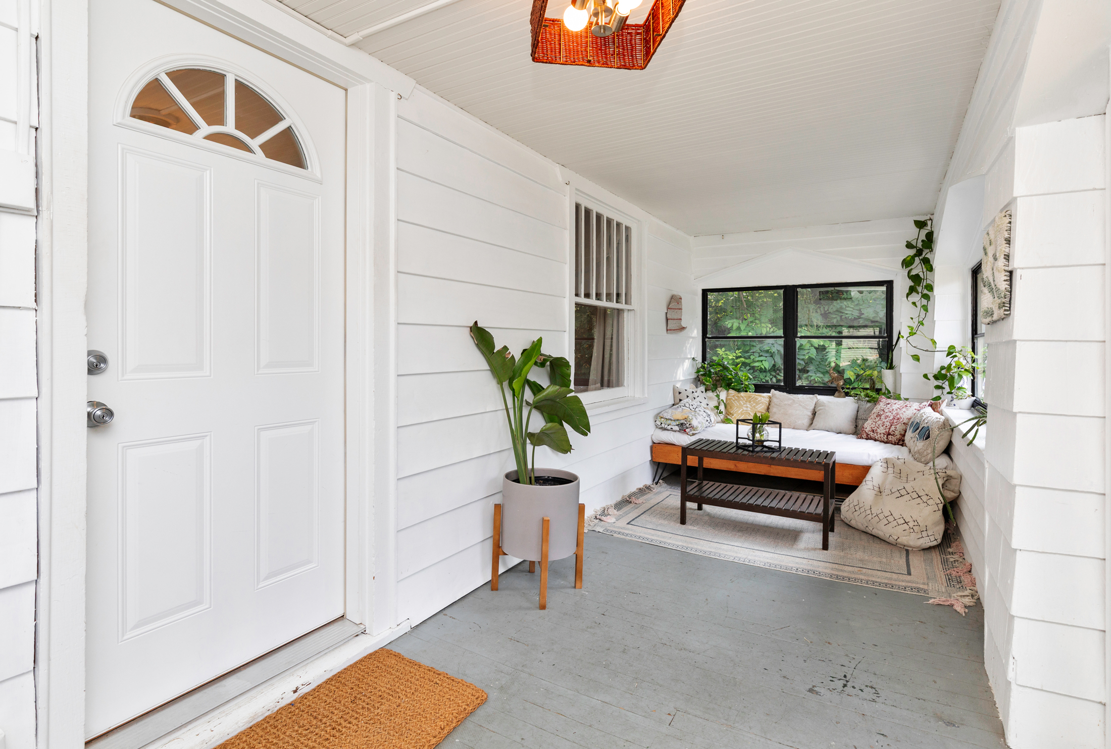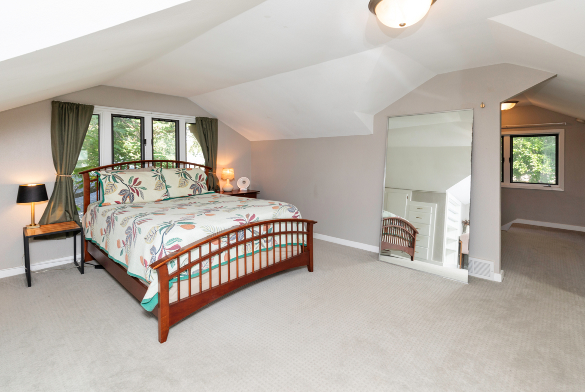 This home includes three bedrooms and two full bathrooms across two floors, offering 1,429 square feet of comfortable living space. A charming three-seasons porch and back deck extend your living area outdoors, perfect for relaxing or entertaining with a couch and daybed designed exclusively for this space. Built-in drawers and bookshelves provide ample storage, making the home feel more spacious.