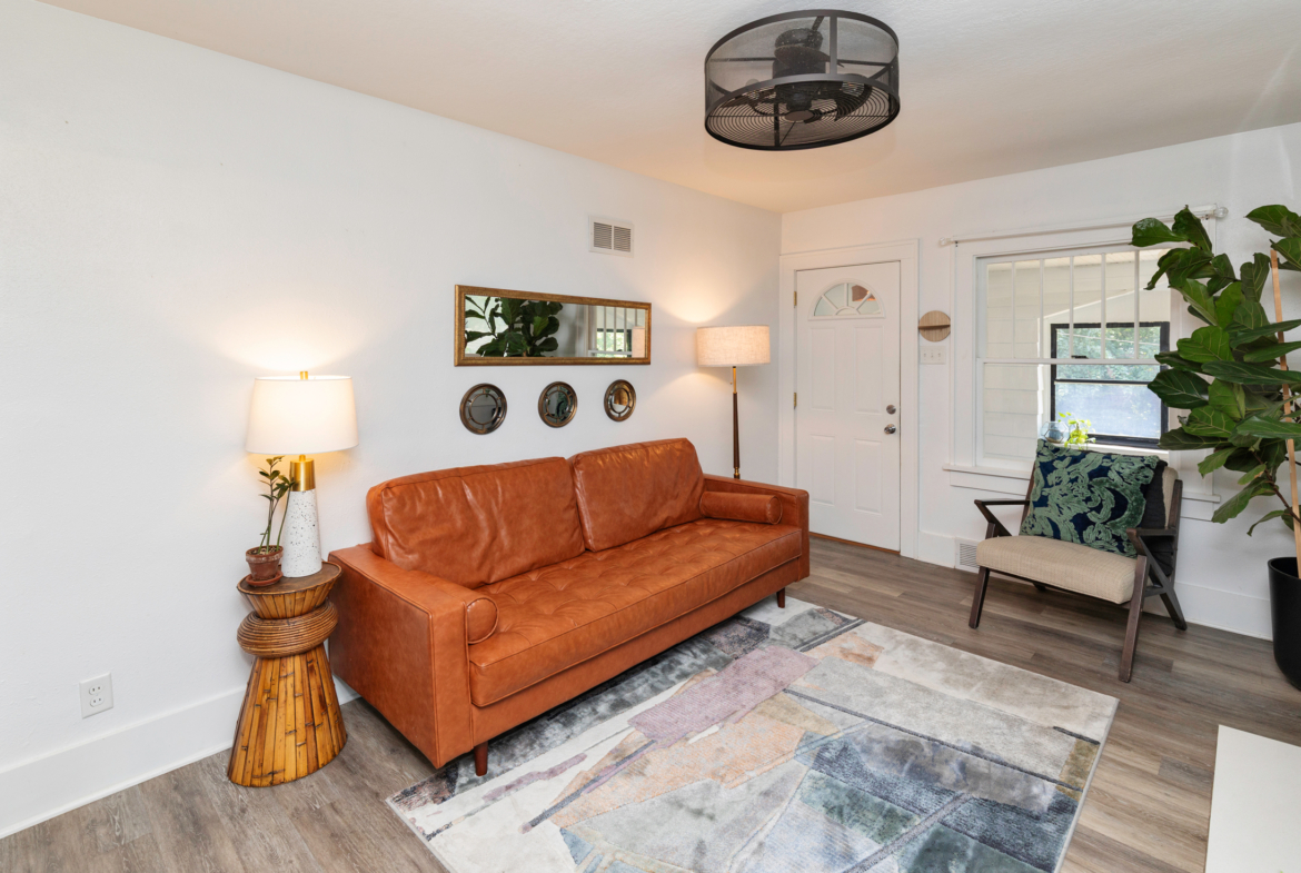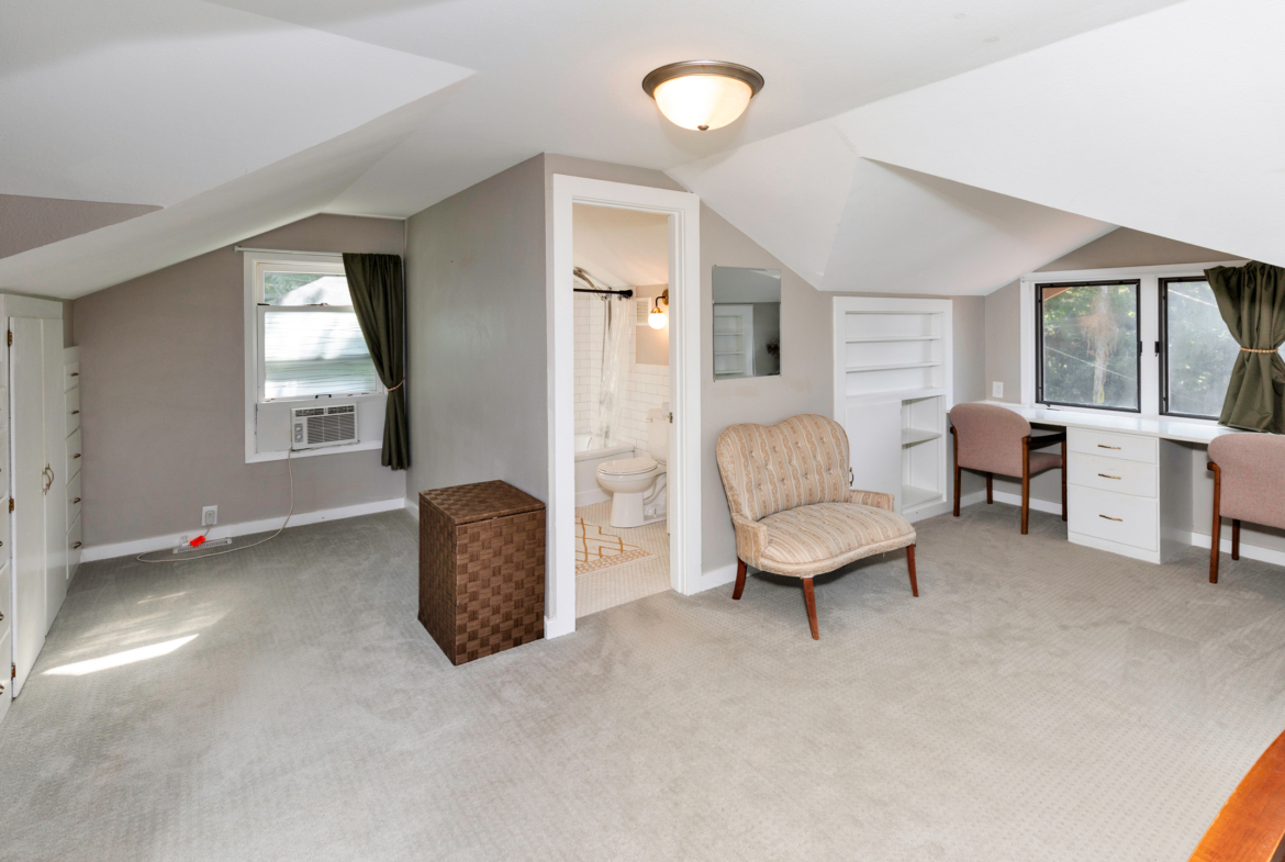 Though just over 100 years old, the home was carefully renovated in 2017 and feels fresh with features like subway tile and stainless kitchen appliances. The house flows from the living room into the kitchen, with a pair of first-floor bedrooms and a full bath. The entire second floor is a master bedroom and bathroom, giving the owners plenty of space for relaxed living. The current owners recently upgraded the light fixtures and faucets and added a new dishwasher.