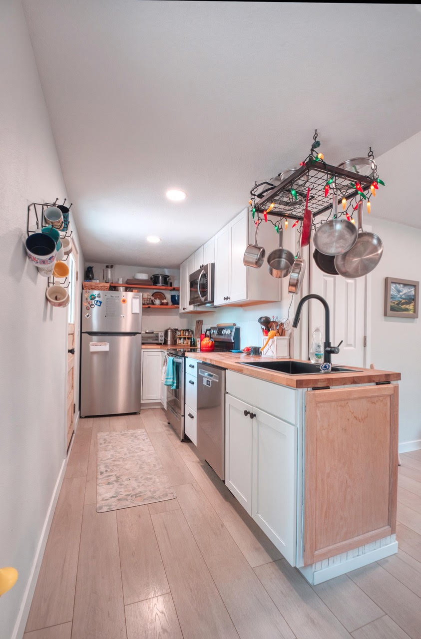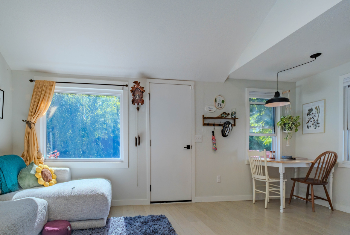 This house always feels warm and cheery because of all of the natural light it gets. The yard is an urban forager’s paradise, with apples, pears, plums, peach, mulberry, blueberry, elderberry, currant, nectarine, and more, providing delicious fruit throughout the growing season. The privacy of this lot makes this place into a secluded escape from the hustle and bustle, without sacrificing the convenience of being right in the middle of town.